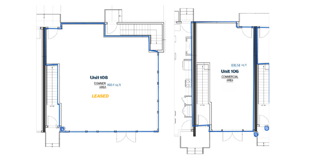 Unit Lease Rate Operating Cost (per sq ft) Unit Size (sq ft) 108 LEASED $14 PSF (Est. 2026) 960 106 $14 PSF (Est. 2026) 606