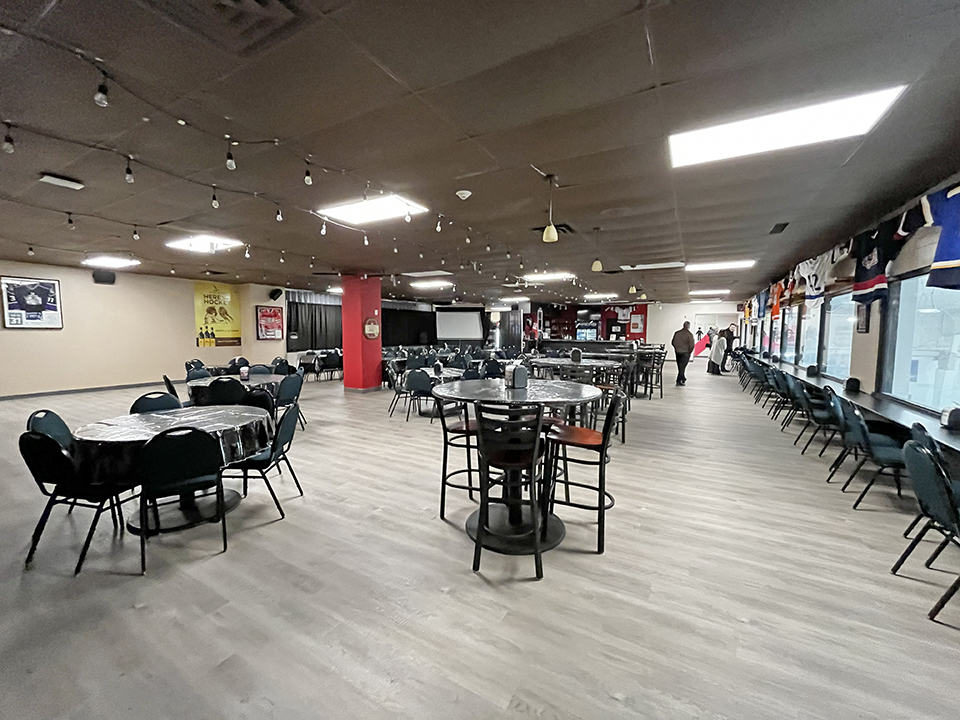 Skip to content Property Description Description: • Turnkey second-floor restaurant and lounge with elevator access and direct views overlooking the ice rink. • Fully equipped kitchen and bar including walk-in fridge and freezer, commercial cooking equipment, prep stations, and dishwashing area. • Event-capable space suitable for weddings, banquets, tournaments, and large private receptions. • Furniture and fixtures included, with seating for approximately 120 guests and extensive built-in storage. • Strong captive customer base generated by daily arena programming, leagues, tournaments, and public skating. • Located within the recently upgraded Ron Ebbesen Twin Arena, enhanced for long-term operation and improved accessibility. • Situated in the growing City of Airdrie, offering a family-focused demographic and close proximity to Calgary.
