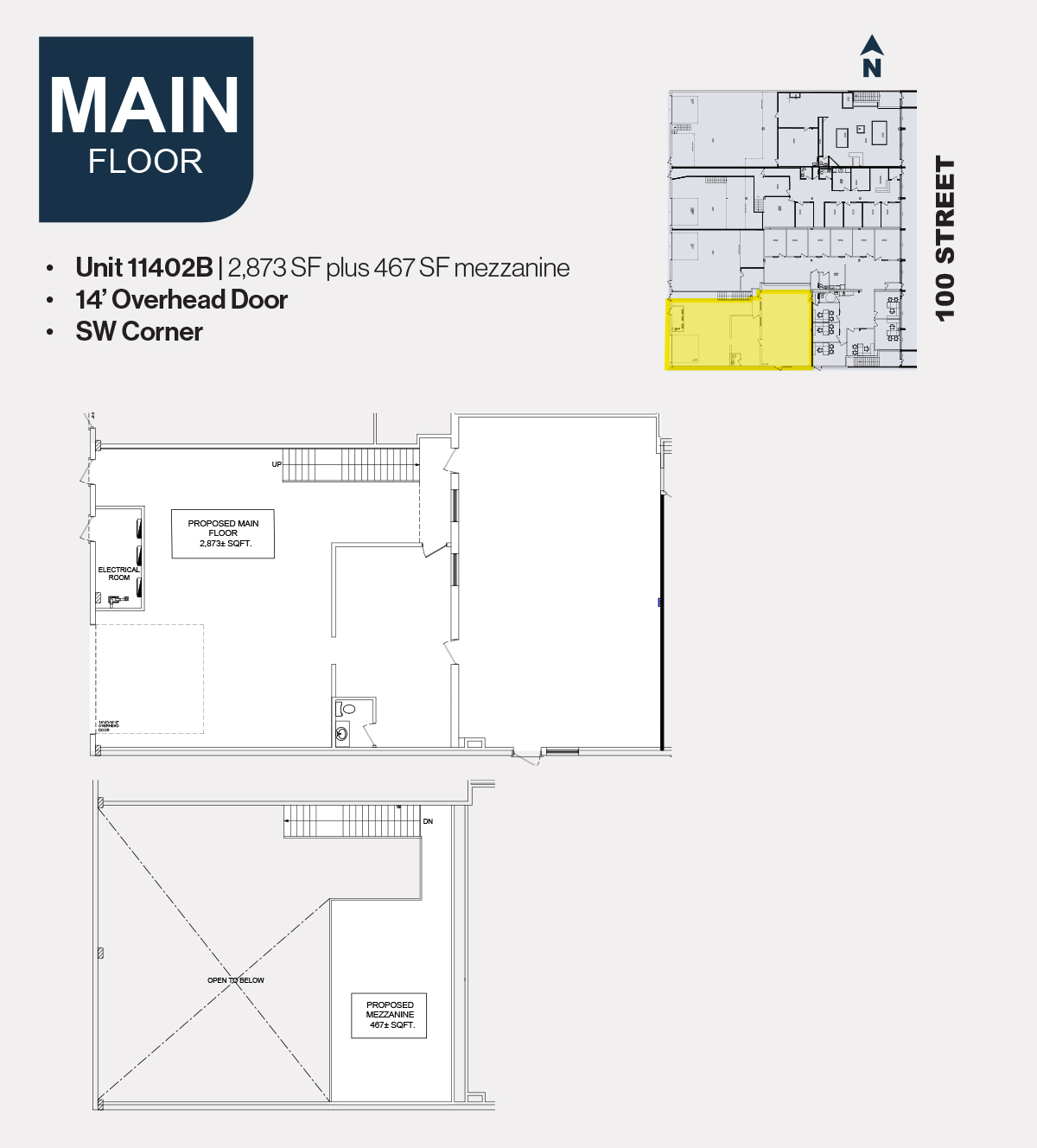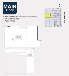 Unit Lease Rate Operating Cost (per sq ft) Unit Size (sq ft) 11402B $12.00 PSF $7.61 2,873 11402B Includes 467 SF mezzanine 11406B $12.00 PSF $7.61 998 11406B Includes mezzanine 205 $10.00 PSF $9.02 315 209/211 $10.00 PSF $9.02 2,487